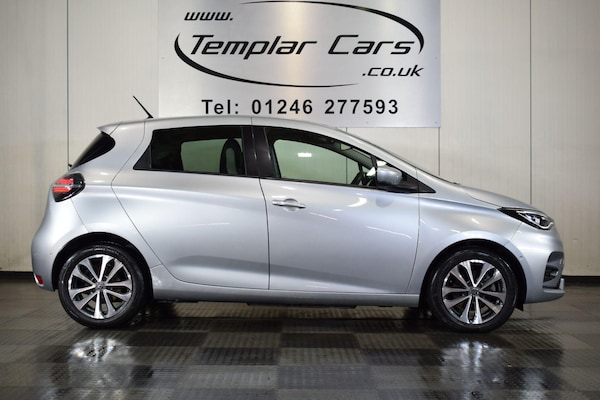 Stunning example of this great little car finished in timeless metallic silver. This 2021 Renault Zoe R135 GT Line boasts a full service history and a clear vehicle history check, offering peace of mind for its next owner. This electric vehicle features a 55 kWh battery offers a great range, and can be fully charged at home using a 7kW charger in approximately 9 hours and 25 minutes. For faster charging, an empty to 80% charge can be achieved in just 1 hour and 10 minutes at a public charging station. The car comes with a the balance of manufaturers warranty until September 2026 and its MOT is valid until January 2027.The GT Line trim level includes a range of desirable features that enhance the driving experience. You'll find full LED headlamps for excellent visibility, and a blind spot warning system to help keep you aware of your surroundings. Parking is made easier with front and rear parking sensors, complemented by a rear view camera. It comes equipped with factory satellite navigation and also has bluetooth phone along with Apple Carplay & Android Auto to keep you connected. Keyless entry is provided by the handsfree keycard, and the automatic air conditioning ensures a comfortable cabin temperature. Furthermore, this Zoe offers a large boot space, making it a practical choice for everyday use and longer journeys, indicating its superior practicality compared to similar vehicles.Fantastic condition throughout. Looks great & drives superb. Please visit to view all our vehicles.