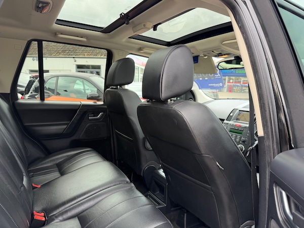 Great value automatic 9 service stamps great spec double pan roof sat nav 19 inch alloy wheels heated electric memory leather seats For sale is a 2012 Land Rover Freelander 2, with 94500 miles on the clock and an MOT that expires on 08/09/2026. This 5-door SUV comes with a powerful 2.2 SD4 HSE Diesel engine with CommandShift 4WD Euro 5, delivering 190 ps of power. With 5 seats, this vehicle provides ample space for passengers and features a range of luxury amenities, including 13 speakers, an Alpine Branded Dolby Prologic 7.1 Surround Sound audio system with radio and 6 disc CD player, DAB radio, and an auxillary socket with MP3 compatibility. The car also boasts front, rear, and load space auxillary power sockets for added convenience. This Land Rover Freelander 2 is the perfect choice for those seeking a stylish, reliable, and feature-packed SUV.