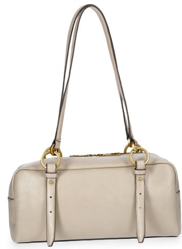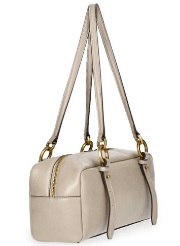 The Scoop women's faux leather top handle shoulder bag combines modern style with practical functionality. Its east-west rectangular shape is crafted from durable 100% polyurethane material with a soft microsuede interior lining for a luxurious feel. The bag features double shoulder straps and an optional crossbody strap to suit different carrying preferences. Antique gold-tone metal hardware adds a refined touch to the design. Inside, the spacious main compartment includes a double card case holder, one zip pocket, and one slot pocket to keep your essentials neatly organized. The dual top zipper closure ensures security and easy access to your belongings. Protective bottom feet help maintain the bag's shape and durability. This small-sized handbag measures approximately 11.6 inches wide, 5.5 inches high, and 4.3 inches deep, making it an ideal everyday accessory that complements casual outfits while providing ample storage space.