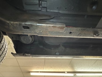 A trailer hitch and spare tire show up first as we start our tour in back on this very clean underside. A single exhaust finds a FlowMaster muffler which sends two tailpipes rearward and exiting via chrome tips behind the right rear wheel. There is no catalytic converter on the system. Power brakes are present with disc in front and drums in the rear and suspension consists of coil springs in front and leaf springs in the rear.