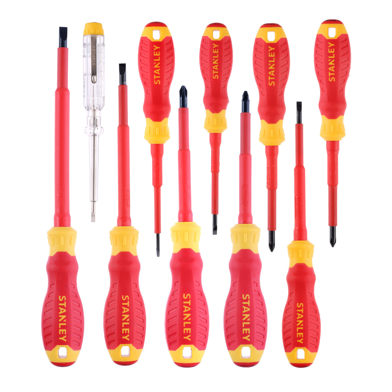 Stanley Les tournevis isolés FatMax® VDE sont dotés d'une isolation mince qui permet un accès sans modification et un travail en toute sécurité jusqu'à 1 000 V. Leurs poignées tri-matière à grip souple, assurent transmission et contrôle du couple. Les pointes durcies garantissent une durée de vie plus longue.