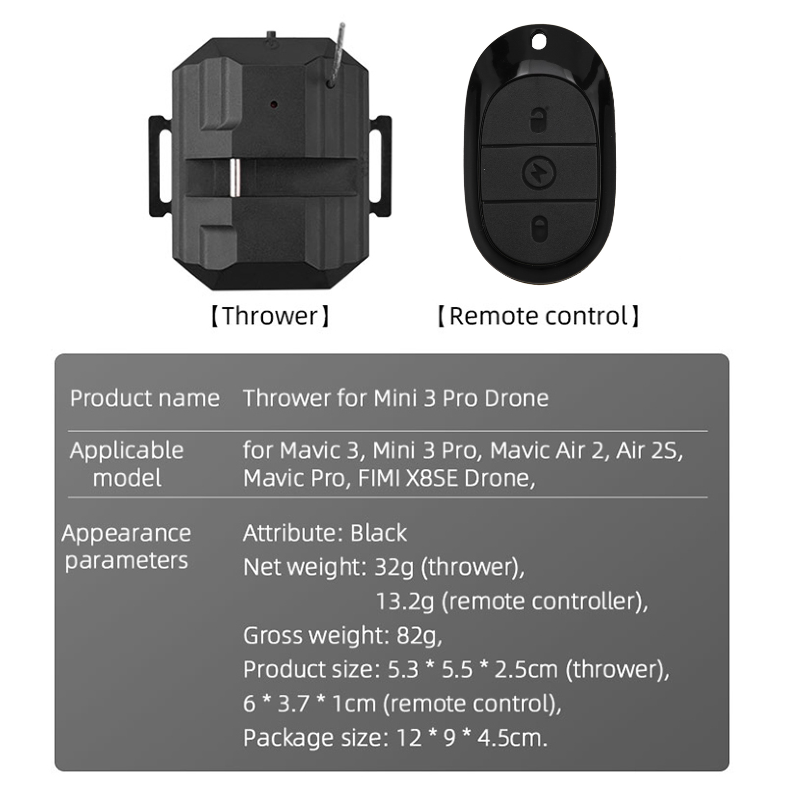 Net weight: 32g(thrower), 13.2g(remote control)