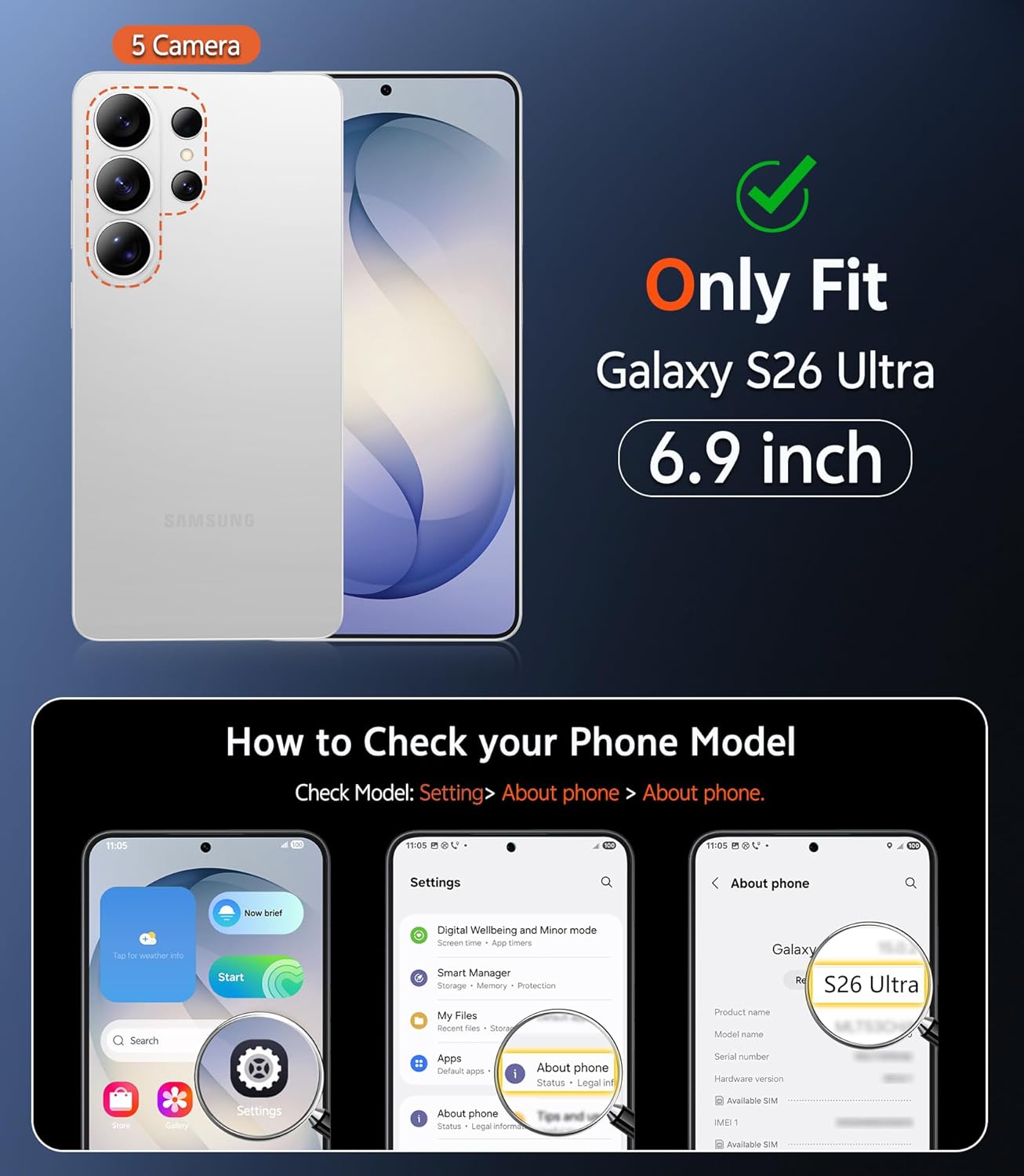 for Samsung Galaxy S26-Ultra Case: Clear Magnetic Phone Cases with Screen Protector Compatible with Magsafe Slim Anti Yellowing Rugged Protective Transparent Cell Phone Cover (Blue Magnetic)