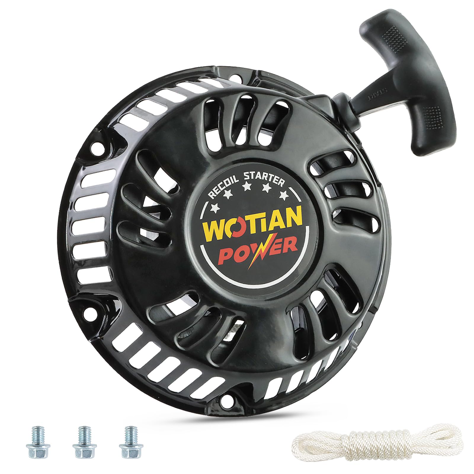 【Package】1×Pull start, 1×Pull rope (145cm) and 3×Screw bolts.