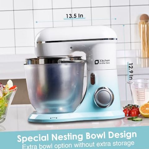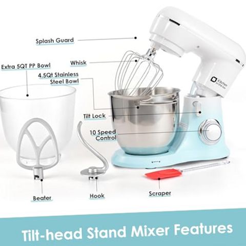 This kitchen mixer offers 10 different speed settings, making it suitable for mixing bread dough, thick batters, meringues, and cake cream, as well as lower speeds for gently stirring delicate mixtures. The tilt-head design allows easy access for installing or removing the bowl and attachments, making operation convenient and efficient.