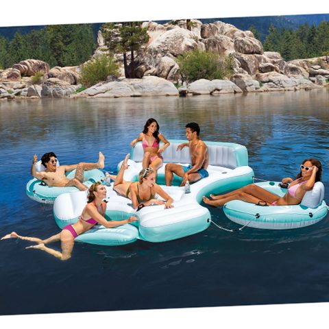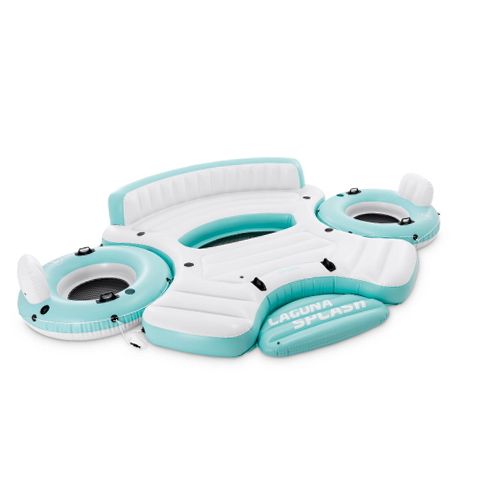 Relax in style and comfort—add the Intex Laguna Splash Island Floating Water Raft to your outdoor water gear today!