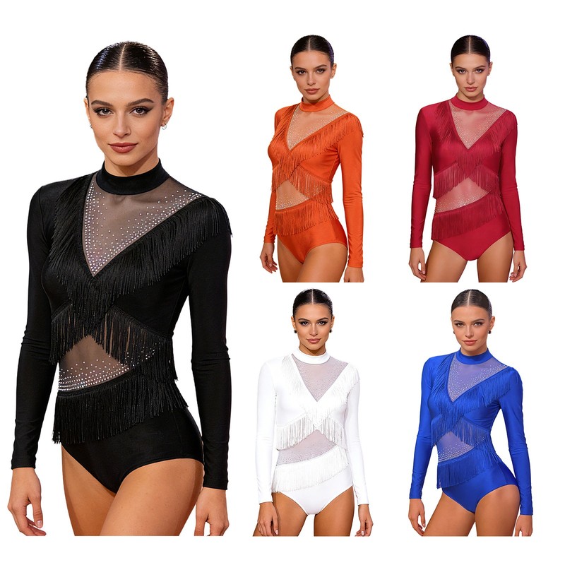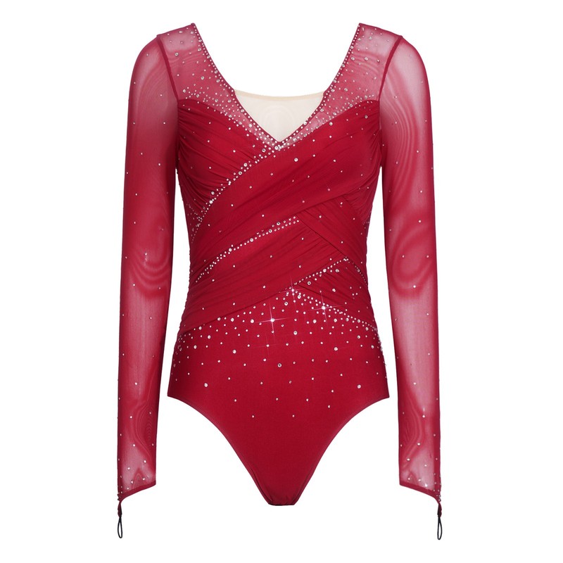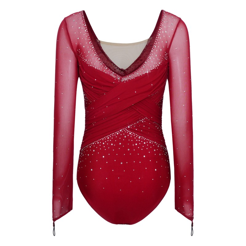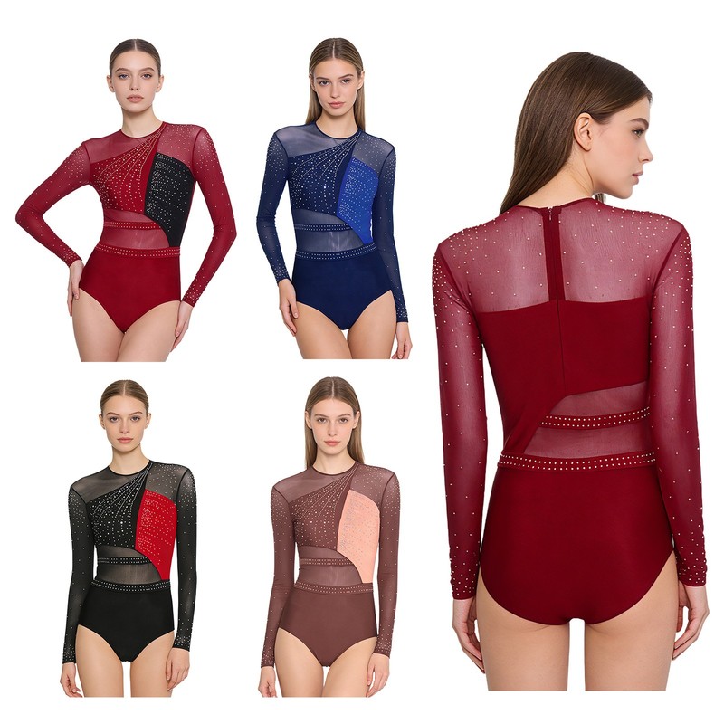 Women's Long Sleeve Gymnastics Leotards Ballet Dance Costumes Rhinestone Figure