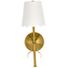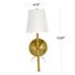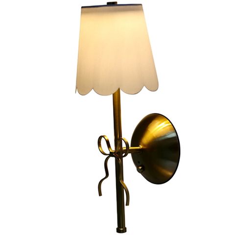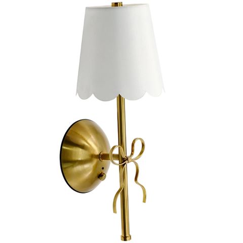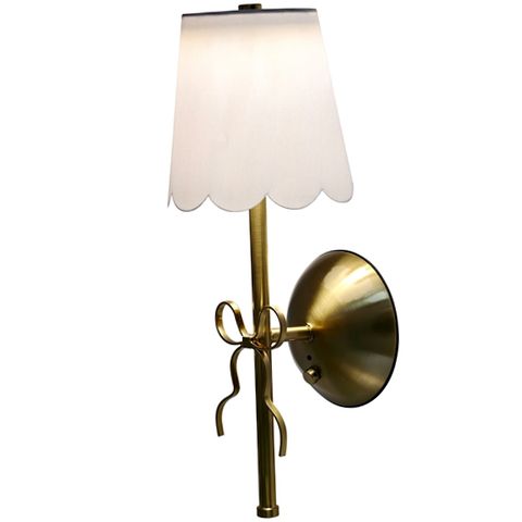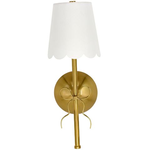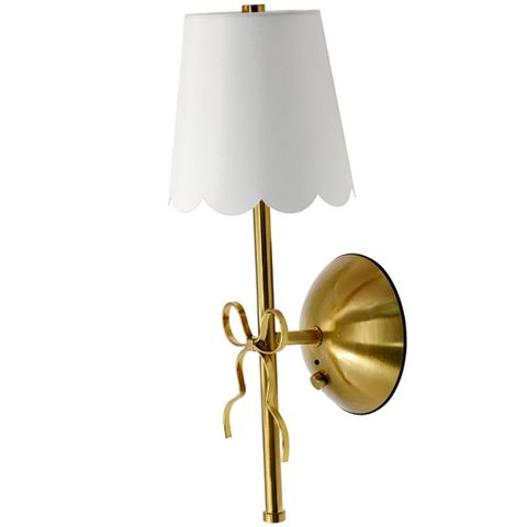 The Home Decor Collection Sterling & Noble cordless rechargeable brass wall sconce is designed to enhance any indoor space with elegant ambient lighting. Featuring a brushed brass finish and a fabric scalloped-edge shade, this wall sconce adds a sophisticated touch to bedrooms, dining rooms, entryways, or living rooms. The integrated LED light provides 85 lumens of brightness with dimmable functionality and adjustable color temperatures ranging from warm to cool white, allowing you to customize the ambiance to your preference. Operated via a convenient remote control or touch button on the base, this sconce offers effortless control over lighting modes and timer settings (15, 30, 60, or 120 minutes). Its rechargeable battery design enables cordless installation without hardwiring; simply remove the sconce from the wall to recharge using the included USB cable (adapter not included). Charging takes approximately 5 hours and supports 15 to 30 hours of illumination depending on brightness level. Crafted from metal, fabric, and plastic components, this lightweight fixture combines durability with aesthetic appeal. The bow motif adds a decorative accent that complements various decor styles including Art Deco, Cottage, Contemporary, French Country, and Modern. This dimmable wall sconce is perfect for creating cozy reading nooks or brightening dark hallways while maintaining an elegant look.