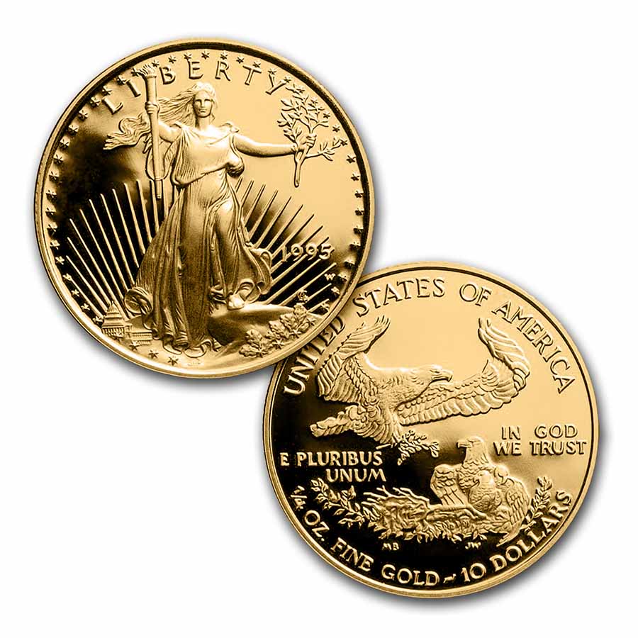 The classic Gold Eagle design gains even more collectibility with the Proof striking of each coin. Add this beautiful 1995-W 4-Coin Proof American Gold Eagle set to your cart today!