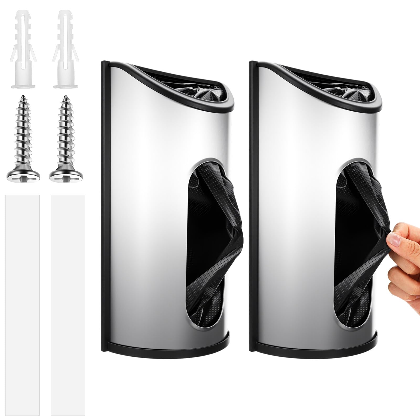 Grocery bag organizer is made of epoxy coated carbon steel and odorless PP plastic, the polished surface won't rust, making the wall mounted trash bag organizer more applied.