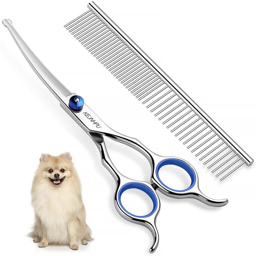 KEJNHPU Professional Dog Grooming Kit 6.8 Inches, Curved Blue