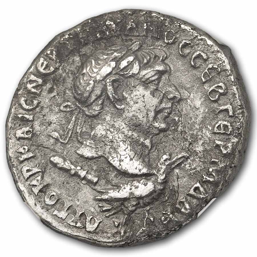 • Obverse: Laureate bust of Trajan right.