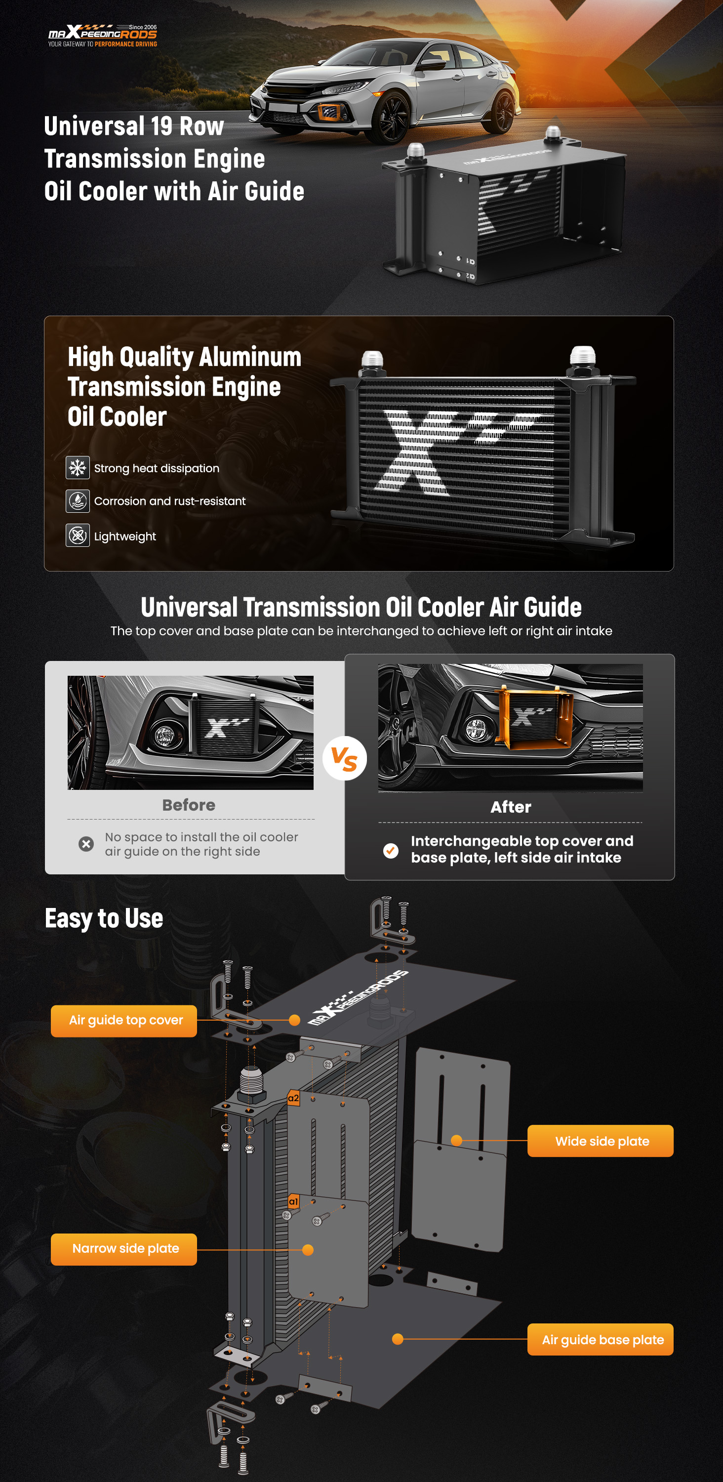 2. This is a universal oil cooler kit. Just measure the size of the space before buying to ensure that it can be installed, and then you can choose the right size according to your cooling efficiency needs.
