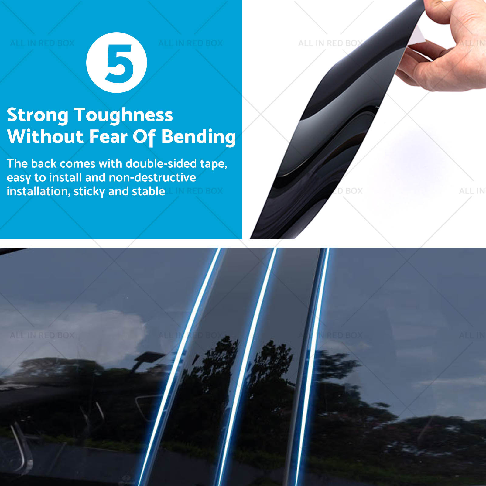 Each door trim piece is fully covered with adhesive, not just the edges, providing a secure and durable fit.