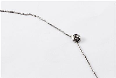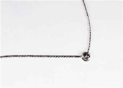 Authentic Roberto Coin 18K white gold and 0.24ctw bezel set solitaire diamond necklace pendant. It is properly hallmarked as shown. Item total weight is approximately 1.84 grams and the bead measures approximately 5.13mm (0.2 inch) in diameter. The chain is approximately 16.5 inches long. Item comes in a nice presentation gift box as shown.