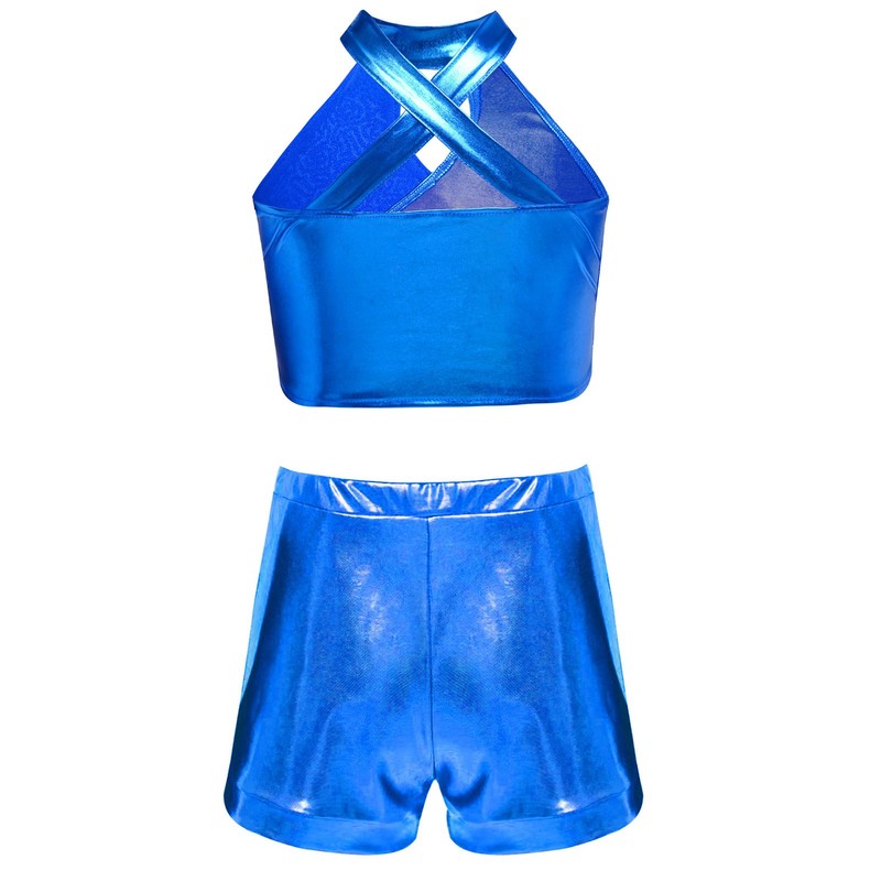 The cross keyhole design on the crop top adds a trendy and stylish element, making your little girl stand out on the stage.