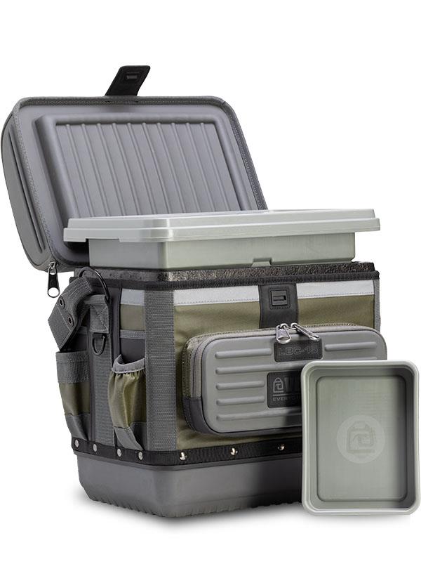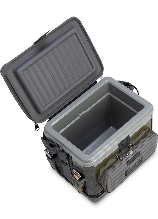 • Holds up to 12 16oz/473ml beverage cans OR 12 12oz long neck bottles OR 16 12 oz cans • Zipperless air-tight access with magnetic latch • 300in3/5 liters of addtional storage in lid • 6 exterior pockets • Injection molded removable liner • Rigid foam insulation • Removeable Dry Storage Tray • Zippered exterior pocket • Removable carrying handle & shoulder strap • Reflective accents for safety • Over-molded TPR rubber waterproof polypropylene base • 5-Year limited warranty