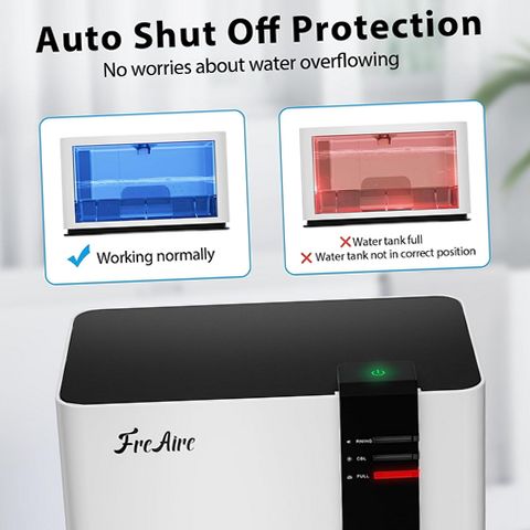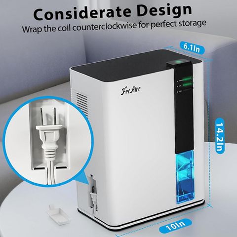 The Aeitto FreAire 2 Pint Portable Dehumidifier efficiently removes up to 34 oz of moisture per day, ideal for spaces up to 650 sq ft such as bathrooms, bedrooms, closets, and basements. Featuring an 88 oz water tank with automatic shut-off to prevent overflow, it operates quietly under 36 dB and offers three modes including Auto, Continuous Drying, and Sleep for customizable comfort. Its multi-color lighting adds ambiance while improving indoor air quality, making it a reliable and convenient solution for maintaining a dry and healthy home environment.