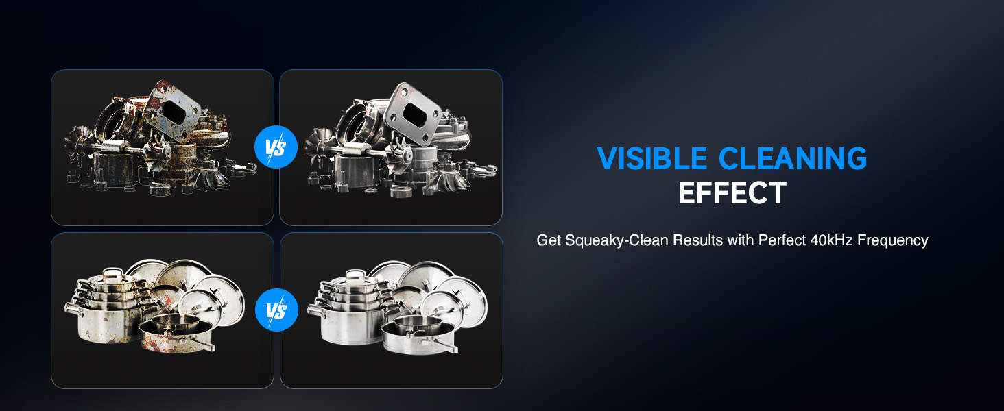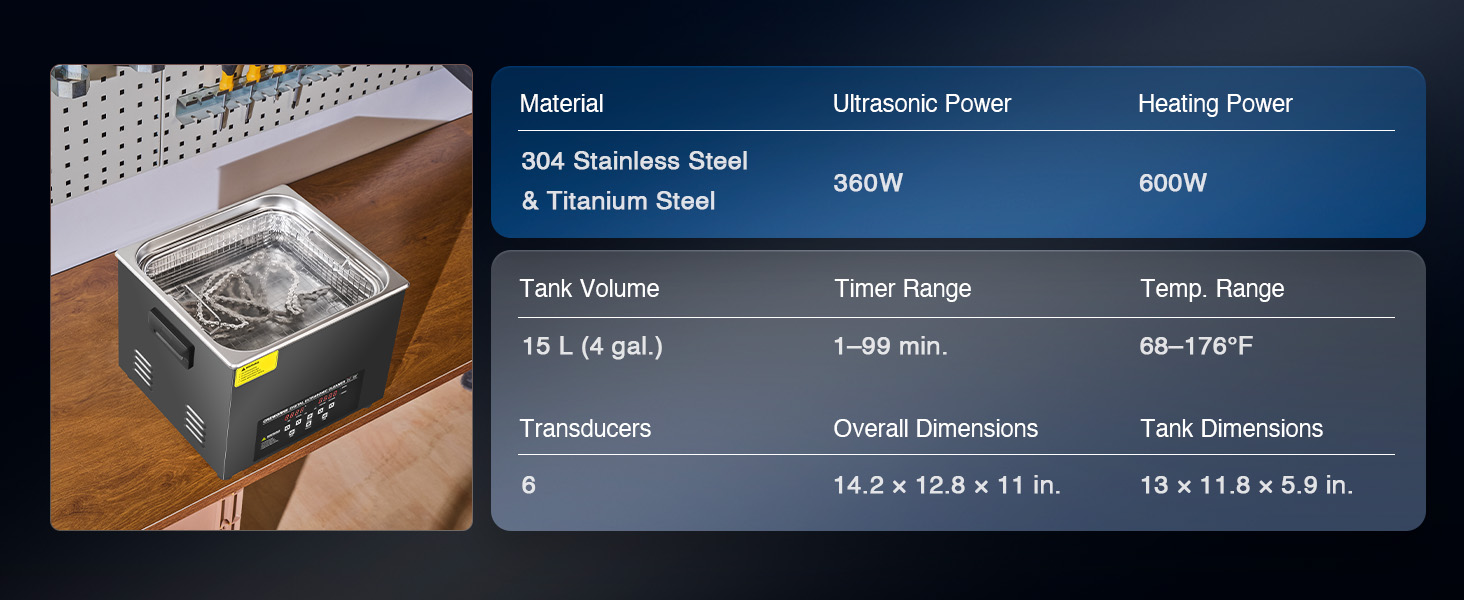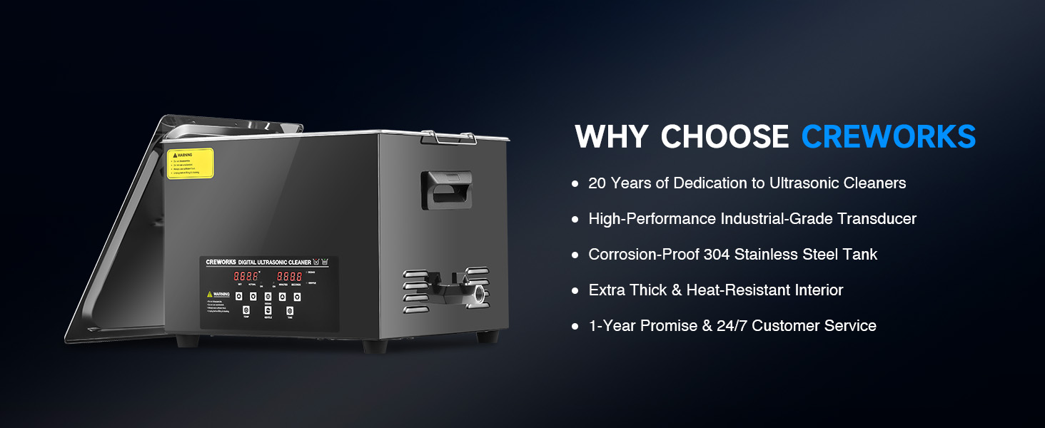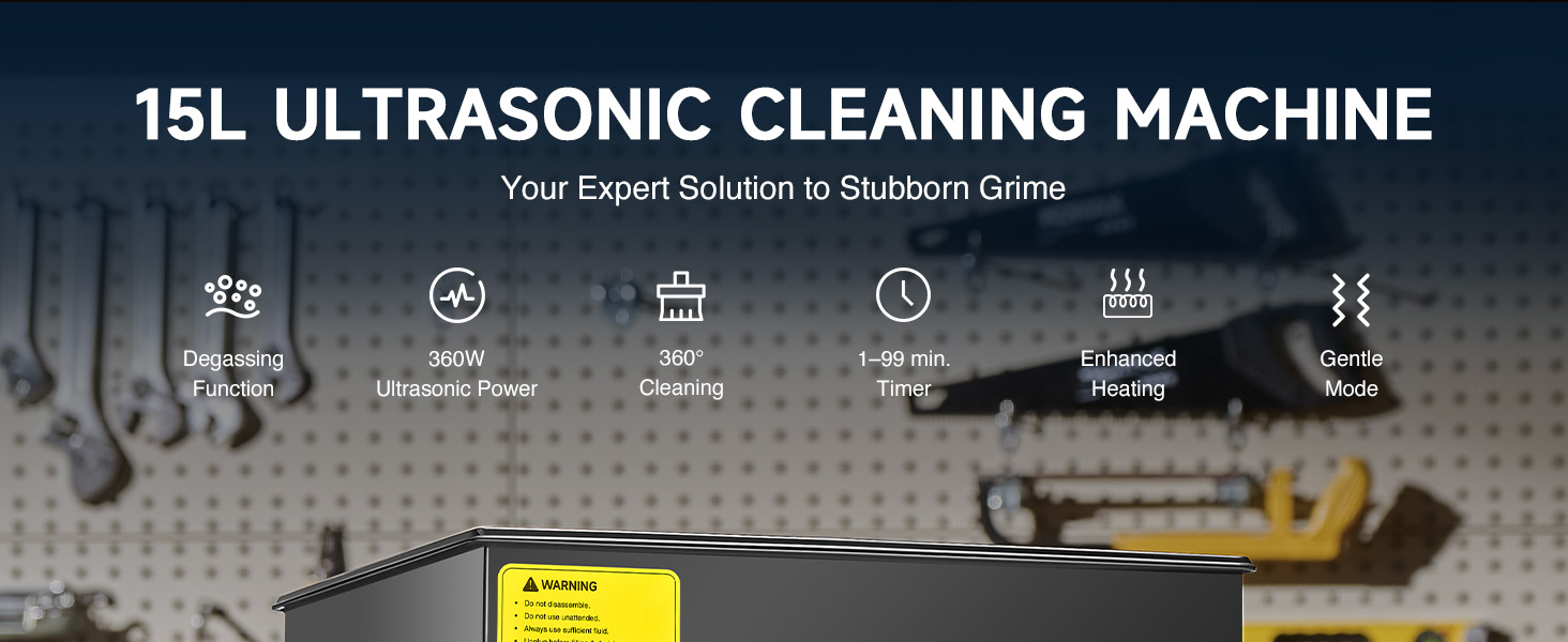This industrial-strength ultrasonic cleaner is built to outperform and outlast the competition with its reinforced stainless steel tank walls, perfectly gentle yet thorough 40kHz sound wave cavitation, and intuitive control panel. The degas and gentle cleaning modes are specifically engineered to protect your delicate and valuable items.