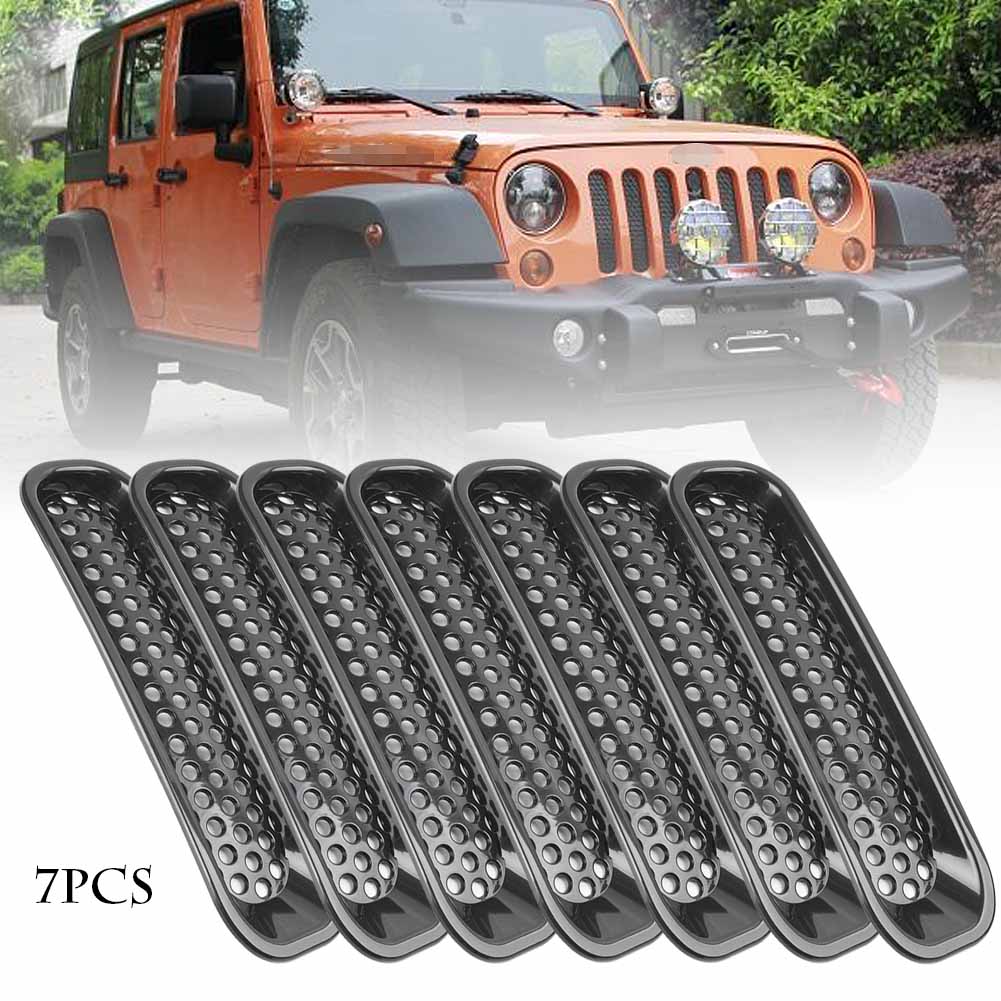 7pcs Front Insert Mesh Grille Cover Trim For 2007-2018 Jeep Wrangler JK Black