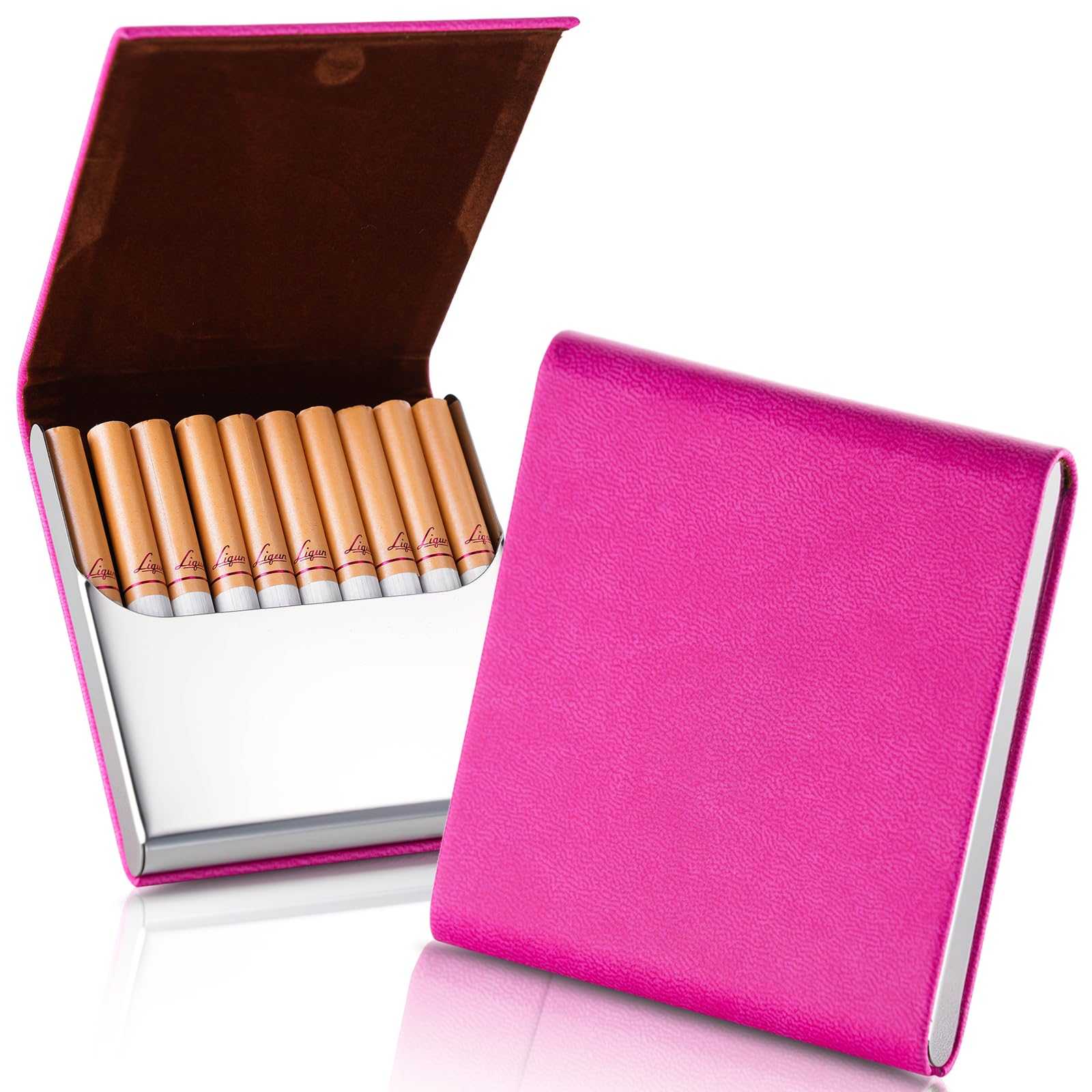 - [HIGH QUALITY]: The cigarette case is made of premium PU leather and stainless steel material, which is of high quality and strong enough to withstand impact and deformation. The smooth rounded design protects your hands from cuts, and the velvet lining makes it look more advanced and textured.