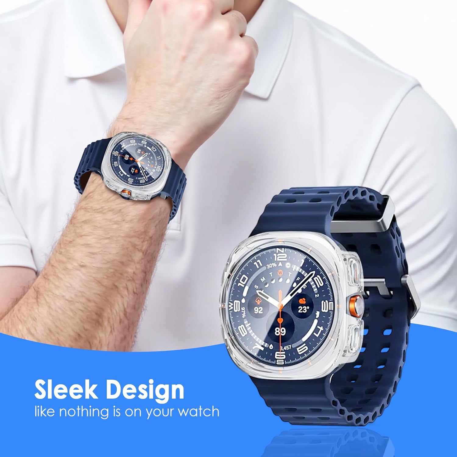 Watch Case Compatible with Samsung Galaxy Watch 8 Ultra 47mm, Clear Protective Cover Built-in Tempered Glass Screen Protector for Women Men