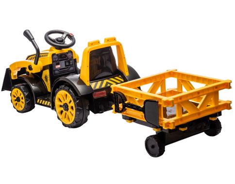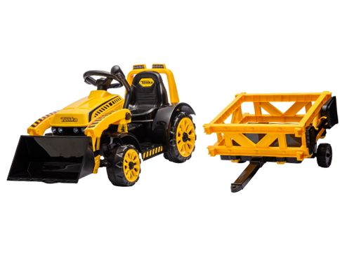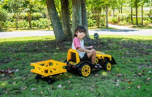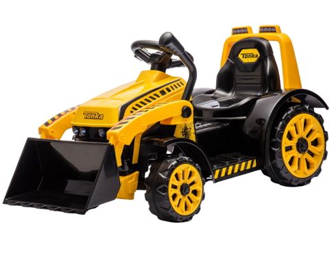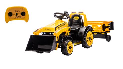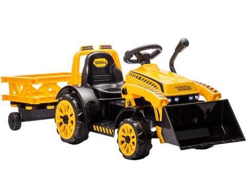 The Best Ride On Cars Tonka 6V Construction Tractor Ride-On offers an exciting and interactive driving experience for young children aged 3 to 5 years. Powered by a 6V battery, this sturdy tractor features easy push-button controls for forward and reverse movement, allowing kids to navigate with confidence. It includes a working front loader for scooping and dumping, plus a detachable trailer to haul toys and supplies, enhancing imaginative play. Realistic headlights and engine sounds add to the fun, while the ergonomic seat and broad footrest ensure comfort during rides. Designed for durability, this ride-on tractor encourages motor skills development and hours of outdoor adventure.