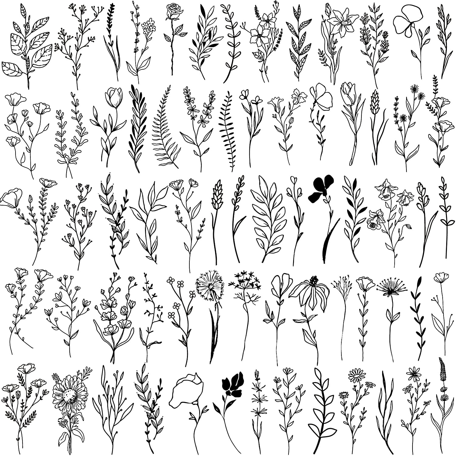 Cerlaza 75 Styles Tiny Black Flower Branch Temporary Tattoos For Tiny,