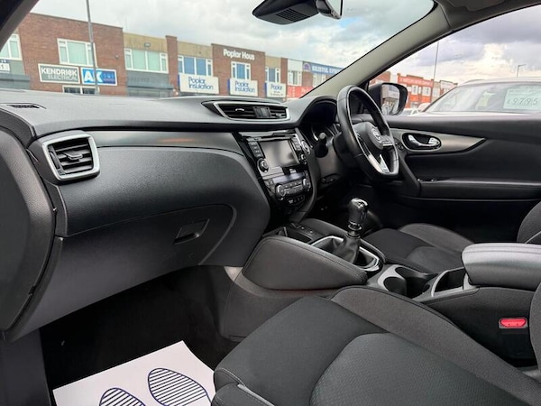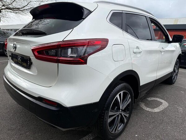 This 2019 Nissan Qashqai DIG T N Connecta offers peace of mind with a clear vehicle history check and a 6 month warranty. This Euro 6 compliant 1.3 litre petrol model comes with 12 months MOT provided on purchase and benefits from partial service history. The N Connecta trim level includes a wealth of desirable features such as the Drive Assist Pack with adaptive cruise control, the Glass Roof Pack featuring a fixed panoramic sunroof, and the Tech Pack which incorporates rear parking assistance with a camera. Enjoy seamless connectivity with Bluetooth and audio streaming, and maintain a comfortable cabin temperature with dual zone climate control air conditioning.This Nissan Qashqai is designed to offer a more economical and cost effective ownership experience, indicated by its low CO2 emissions and low insurance group rating, which are better than many similar vehicles. These factors contribute to lower running costs, making it an attractive choice for drivers seeking value and efficiency..Drive Assist Pack,Glass Roof Pack,Storm White, 6 Speakers, Advanced Drive Assist Display - 5in TFT Coloured Screen, AM-FM-CD Audio System with DAB, AUX Socket for MP3 Player, Bluetooth with Audio Streaming, Front 12v Power Sockets x2, Nissan Connect 7in Touchscreen Navigation and Entertainment System, Rear USB Port, Smartphone App Integration, USB Port, Cruise Control with Speed Limiter, Intelligent Around View Monitor, Intelligent Park Assist, Outside Temperature Sensor, Rear View Camera, Selectable Steering - Normal or Sport, TPMS - Tyre Pressure Monitoring System, Trip Computer, 18in Alloy Wheels, Body Coloured Door Mirrors, Body Coloured Handles, Chrome Glass Surround, Electric Heated Auto-Folding Door Mirrors, Front and Rear Electric Windows, Matt Silver Roof Rails, Puncture Repair Kit, Rear Roof Spoiler, Front Fog Lights, Halogen Headlamps, Intelligent Auto Headlight, LED Daytime Running Lights, 3 Height Adjustable Rear Headrests, 60-40 Split Rear Folding Seats, Ambient Lighting Centre Console, Auto Wipers, Boot Light, Centre Console Storage and Armrest, Chrome Interior Door Handles, Daytime Running Lights Dip Function When Turn Signal Applied, Driver Seat Height Adjustment, Drivers Seat with Manual Lumbar Support, Dual Zone Climate Control Air Conditioning, Front and Rear Door Pockets with Drink Holders, Glossy Black Dash Trim, Height Adjustable Front Head Restraints, Interior Ambient Lighting, Leather D Shaped Steering Wheel, Leather Gear Lever, Leather Knee Pad, Luggage Board System, One Touch 4 x Auto Windows with Illuminated Switches, Parcel Shelf - Stow Function Under Luggage Board, Passengers Seat with Manual Lumbar Support, Pollen Filter, Remote Audio Control, Seats - Passengers Height Adjustment, Start Push Button, Steering Wheel Mounted Audio Controls, Synthetic Leather Wrapped Door Handle with Contrasting Stitching, Tech Pack, Tilt and Telescopic Adjustable Steering Wheel, Electric Speed-Sensitive Power Steering, Nissan Chassis Controls, Underbody Vortex Generators, AutoHold Function - Stand Still Assist, Driver-Passenger-Side and Curtain Airbags, Electric Parking Brake, ESP ABS EBD and Brake Assist, Front and Rear Seat Belts with Load Limiter and Pretensioners, Front and Rear Seatbelt Warning, Height Adjustable Front Seatbelts, Hill Start Assist, ISOFIX Child Seat Anchoring Points - Rear x2, Nissan Anti Theft System Immobiliser, Nissan Intelligent Key, Passenger Airbag Deactivation System, Rear Door Child Locks, Rear Wiper with Reverse Link, Remote Central Locking with Superlocking, Safety Shield Plus, Smart Vision Pack, Thatcham Category 1 Alarm