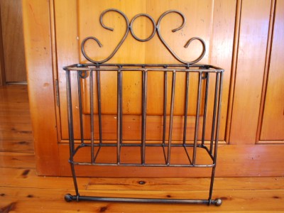 This is a lovely wall mounted bathroom or kitchen accessory. It has simple frame and a bit scrolls. Magazine or cooking book rack on top with toilet roll or tower paper roll holder underneath. Suits bath or kitchen...Makes your home organized, tidy and clean.