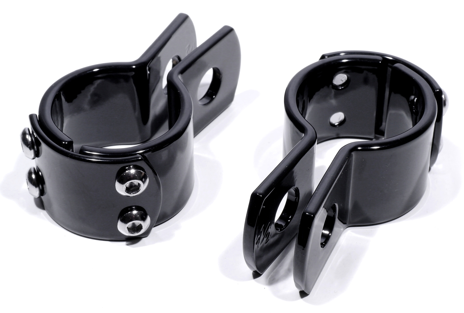Chrome-plated 3-piece mounting bracket with a strong quality and good workmanship with a diameter of 1½" (38 mm). The hole for attachment to the lugs has a diameter of 1/2" (12.9mm). For gentle attachment to the frame, crash bar or other attachment options. The price is per piece / per clamp. Other sizes as well as black versions are available from us