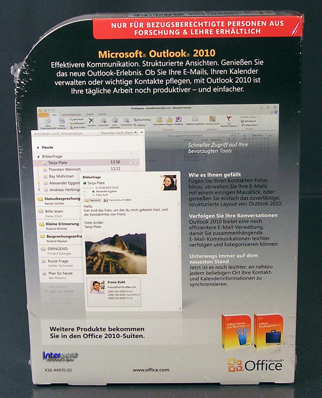 Microsoft Office Outlook 2010 Vollversion Academic Edition inkl. Zweitinstallationsrecht für Notebook Windows 10 kompatibel