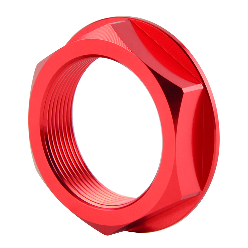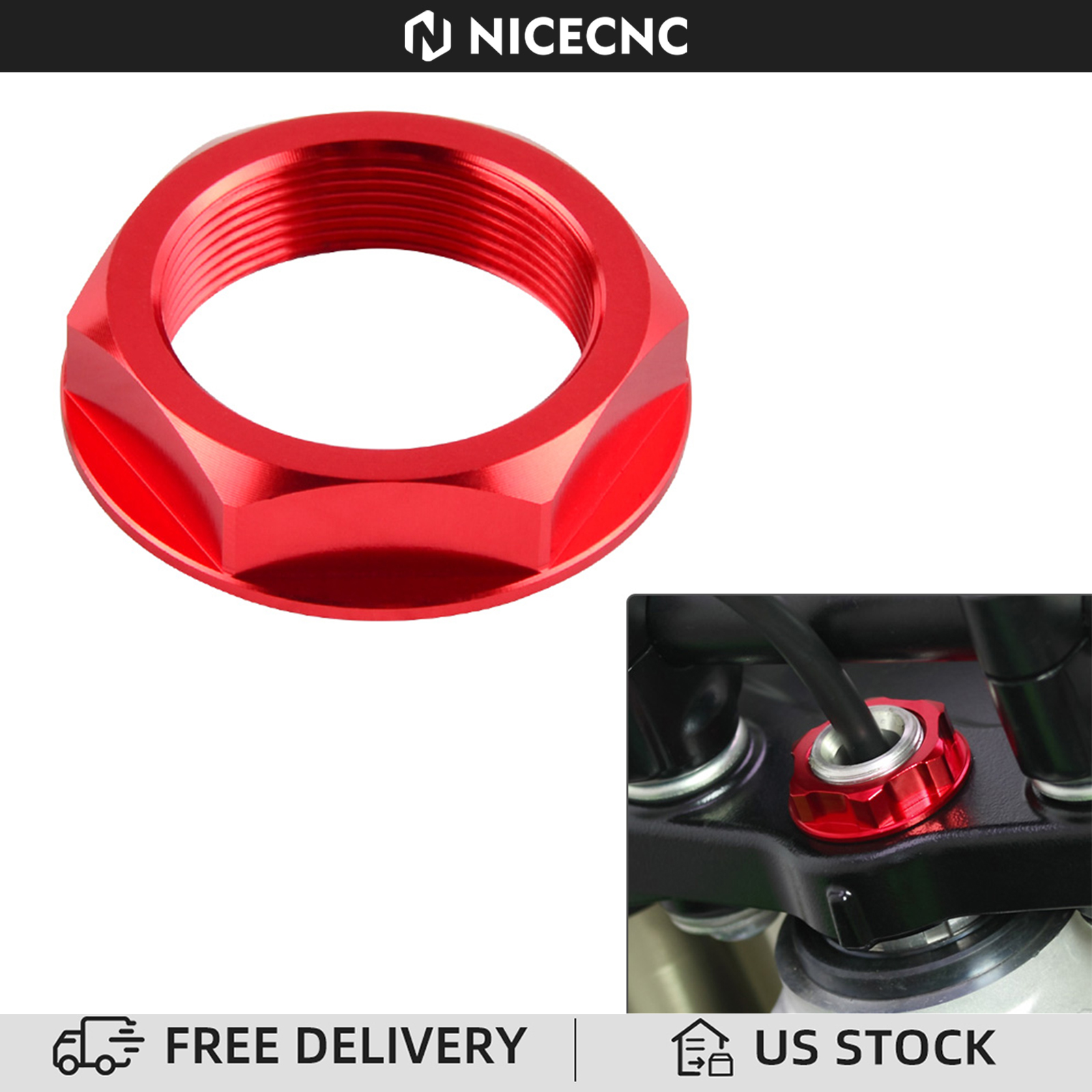 up on the track. Product Details: -- Condition: 100% Brand New -- Material: 6061-T6 Aluminum -- Color: Red -- Pre-drilled for safety wire -- Anodized surface finish -- CNC machined from high qualitybillet 6061-T6 aluminum -- Stronger and lighter than OEM steel unit Package Included: 1 x Steering Stem Nut