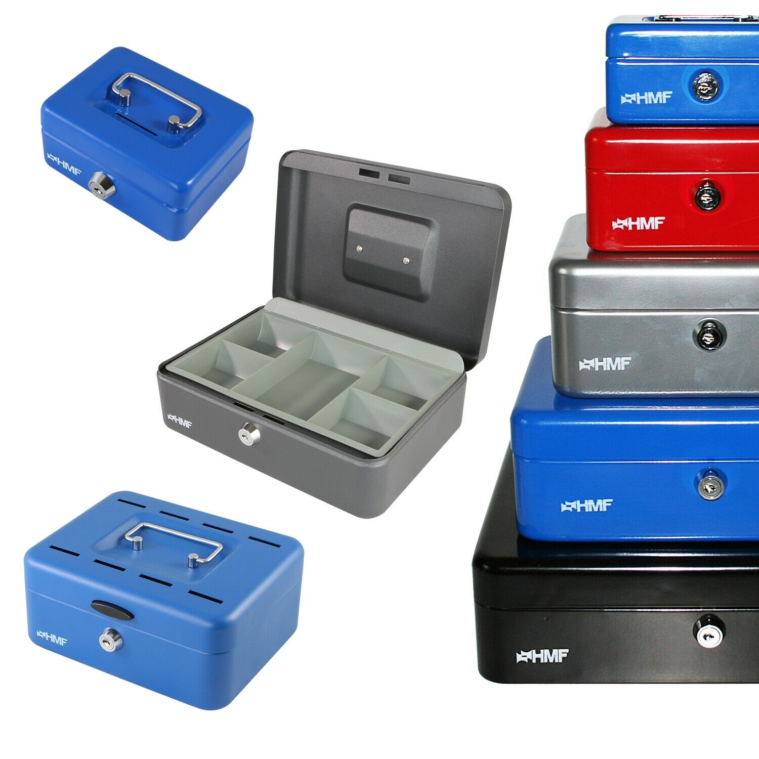 Die Geldkassetten von HMF in verschiedenen Größen und Ausführungen sind ideal zum Verstauen von Geld oder als Kasse.