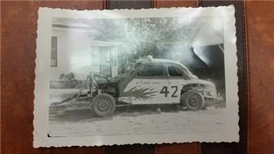 WOW ........... RARE VINTAGE "1930-40's DIRT TRACK RACING CAR BLACK and WHITE PHOTO - LARRY AMOS" 5" - VERY UNIQUE ITEM * A MUST HAVE! (very tough find!) additional auctions ship for free! Buy more - save More ......