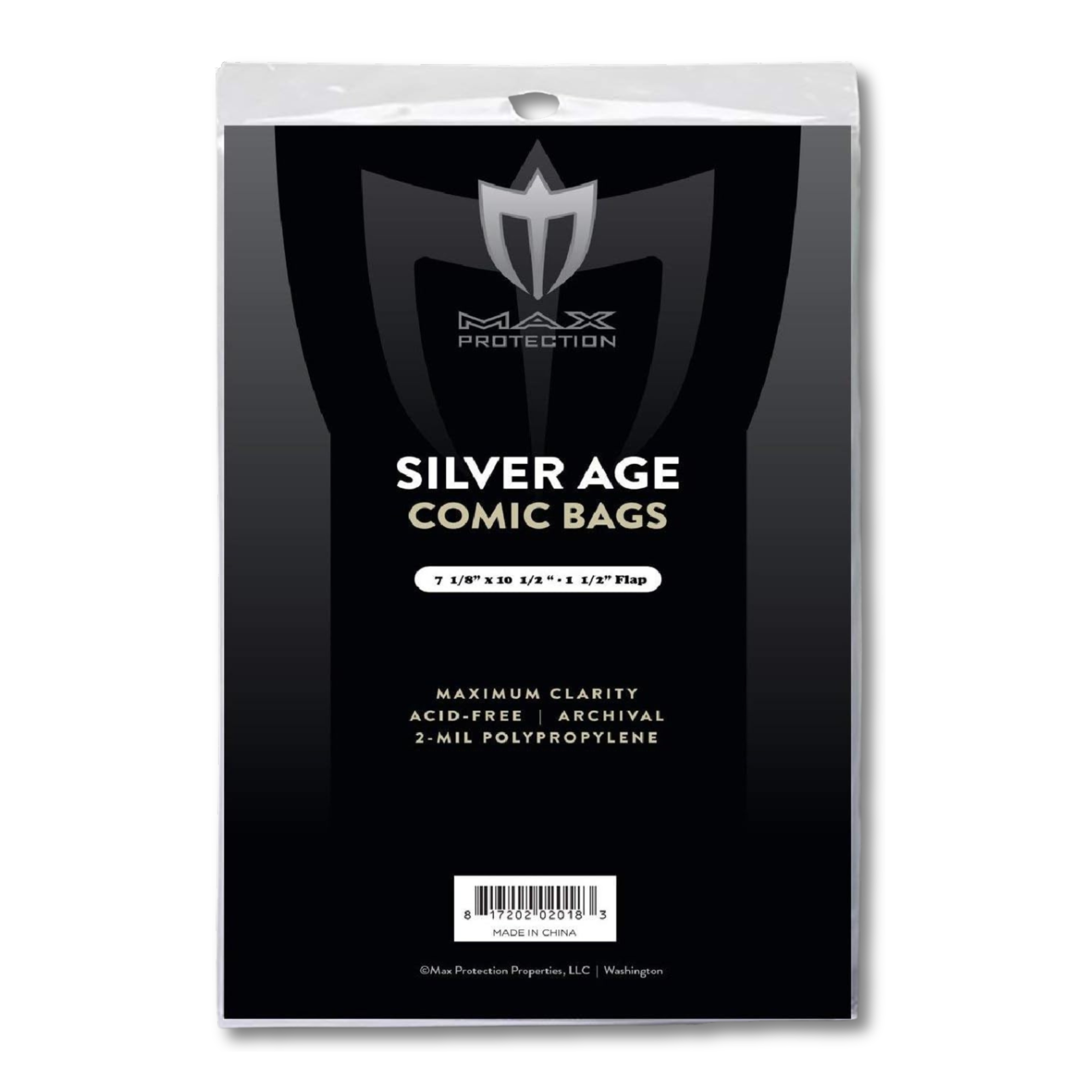 The Max Protection Silver Comic Bags are an acid free, archival quality product made of crystal clear polypropylene. Use this item to protect and store your collectible silver comics. Available in 2 sizes so you can now fit your thickest silver comics into the appropriate bag.