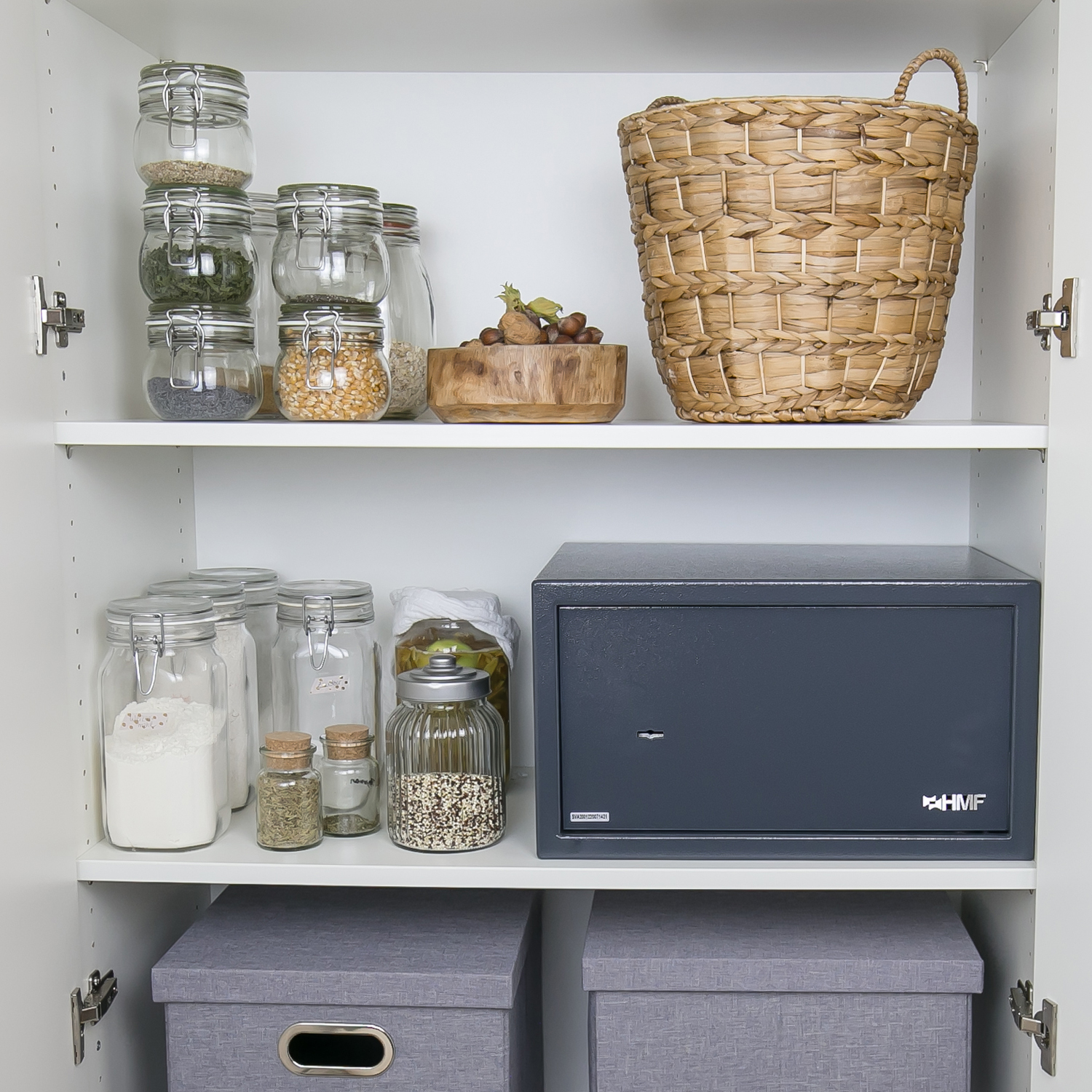 Der HMF Möbeltresor mit Doppelbartschloss überzeugt mit einer Doppelbolzenverriegelung und einer 4 mm dicken Türstärke