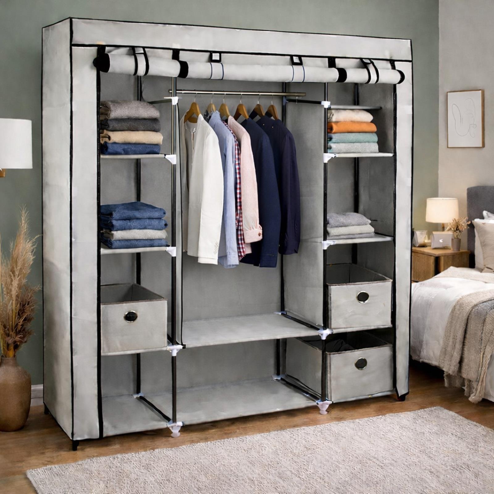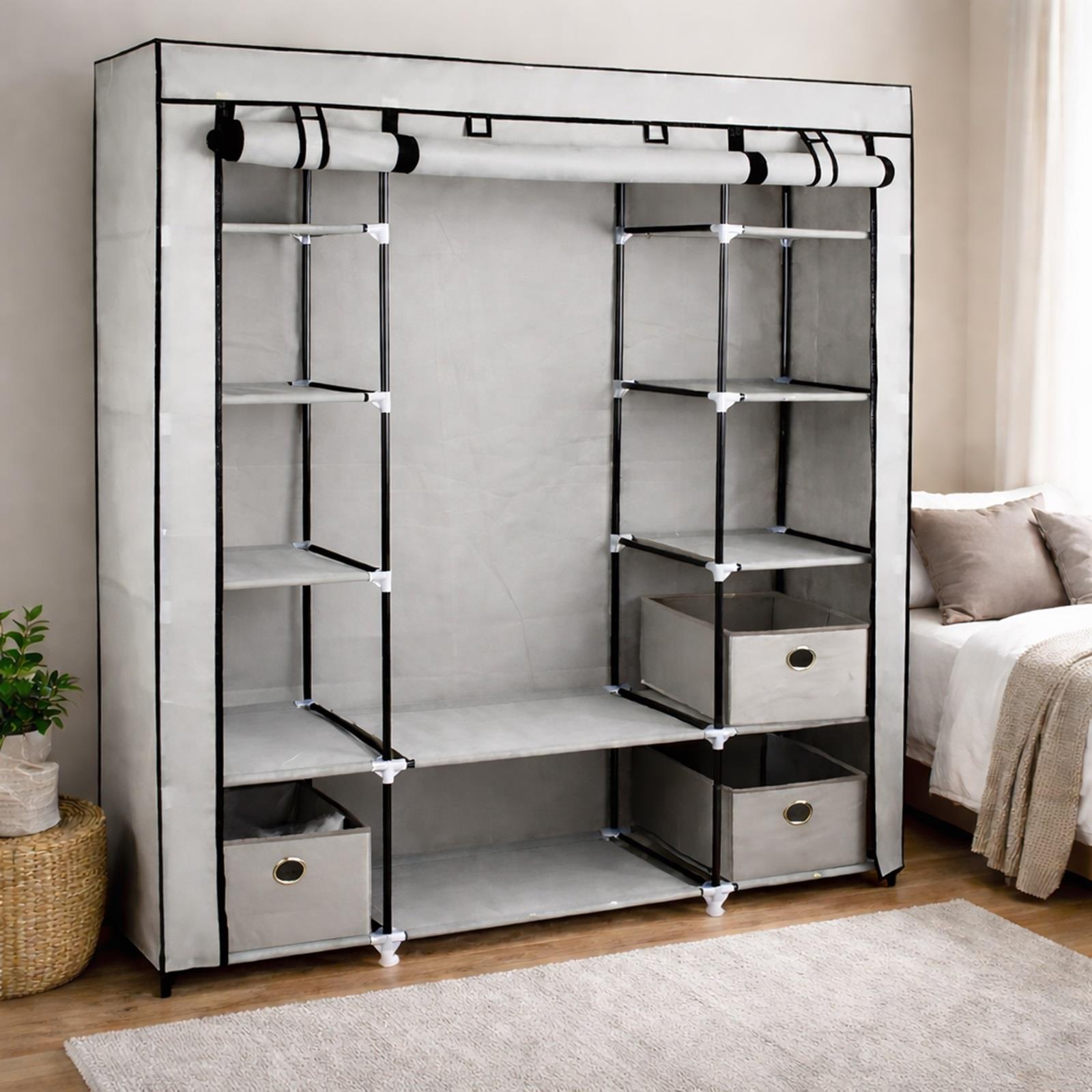 Whether you’ve finally run out of space in your existing wardrobe, or need a lightweight but reliable alternative to a heavy wooden style, the Eurotrade Canvas Effect Wardrobe provides a safe and attractive home for your clothes, shoes and accessories. Great as a temporary or permanent storage solution, the canvas wardrobe works just as well in the master bedroom as it does in a guest room, rented accommodation, university halls, caravan or holiday home.