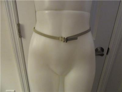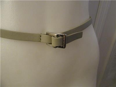 WOMENS ELIE TAHARI TAUPE LEATHER SKINNY BELT W/ SILVER HARDWARE - SIZE 4