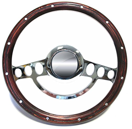 Hot New Product! 14" Nostalgia Style Chrome and Genuine Pine 14" Steering Wheel Kit Nine Hole for 1974 to 19 94 GMC and Chevy C-Series, K-Series, Blazer, Suburban, GMC trucks, Jimmy and also Aftermarket Columns - Flaming River, Ididit, etc.. This kit will fit on the following: MOST AFTERMARKET STEERING COLUMNS, INCLUDING FLAMING RIVER AND IDIDIT WITH GM SPLINES. 1974-88 American motor (expect Alliance). Buick 1969-93 (except telescoping steering column). Cadillac 1969-89 All Models (except telescoping steering column). Chevrolet 1969-94 all model (except Corvette, Sprint, Spectrum 86-88 nova). Camaro 1969-94 (except telescoping steering column or airbag steering wheel). Nova 1969-94 (except 86-88 Nova). Chevrolet/GMC Truck pick-ups 1974-94. Chevy GMC Vans 1982-94. 1978-81 Dodge/Chrysler plymouth, Tilt col All models. 1979-81 Dodge/Chrysler/Plymouth Tilt col, 2WD & 4 WD pick-up, vans.. Specifications: 14" chrome with genuine dark pine half wrap. 9 Hole chrome adapter. Behind the wheel is billet finished with smooth finger grooves. All mounting bolts included. This set includes the wheel, half wrap, horn and adapter.
