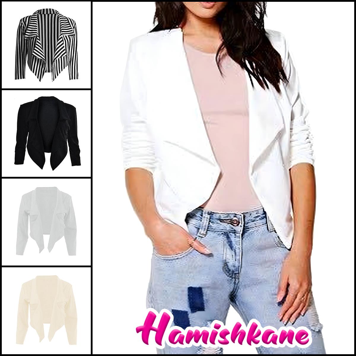 New Womens Plain 3/4 Sleeve Open Front Waterfall Style Cropped Blazer Coat Short Top Product Info: Description: New Womens Plain 3/4 Sleeve Open Front Waterfall Style Cropped Blazer Coat Short Top Which Is Perfect Addition For Your Wardrobe For Any Casual Occasion. It Has Soft Stretchy Comfortable Material, 3/4 Long Sleeve, Collared Neck, Open Front, Plain Waterfall Style Cropped Blazer Jacket Short Coat Top Which Gives You Stylish Classic Look With Any Top And Jeans. Product Code:BLAZ_CROP_3QS