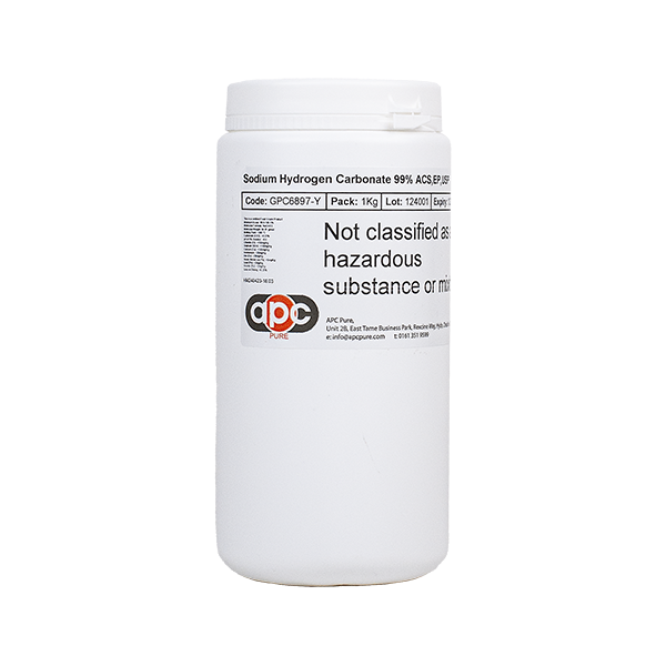 At APC Pure, we offer Sodium Hydrogen Carbonate in its pure form with a minimum purity of 99% ACS, EP, USP. This high purity grade is suitable for use in various analytical, research, and industrial applications.
