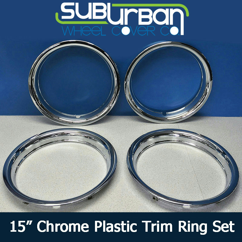This listing is for a brand new set of 4 aftermarket ABS chrome plastic trim rings. They have a depth of 1 3/4" which is the most common depth. They will fit most 15" steel wheels. They are constructed out of durable triple plated chrome ABS plastic for a long lasting finish. Metal clips provide a superior fit.