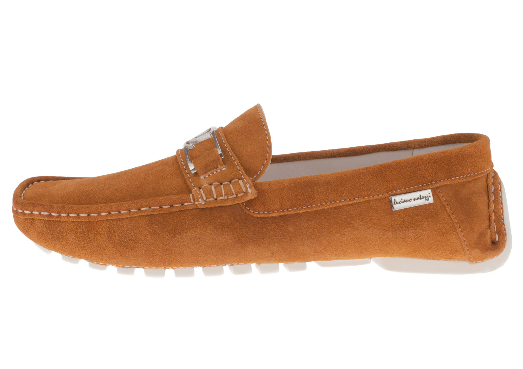 Luciano Natazzi Shoe Corporation manufactures premium men's footwear, accessories, and cedar products using the philosophy of quality, service, and integrity. The sleek silhouette and versatile styling of this premium quality suede leather modern driving moccasin loafer from Luciano Natazzi offers high style and sophistication; perfect for your work, day, or evening look. This loafer's streamlined upper design create a classically handsome silhouette, while a full leather lining, lightly-padded full leather foot bed, and rubber sole delivers a custom-like fit for superb comfort. Imported Italian Suede Leather Upper Driving style rubber out sole, sewn by hand and machine to the upper for super flexibility. Made in India.