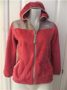 GIRLS THE NORTH FACE PINK & GRAY FLEECE W/HOOD - SIZE L/G
