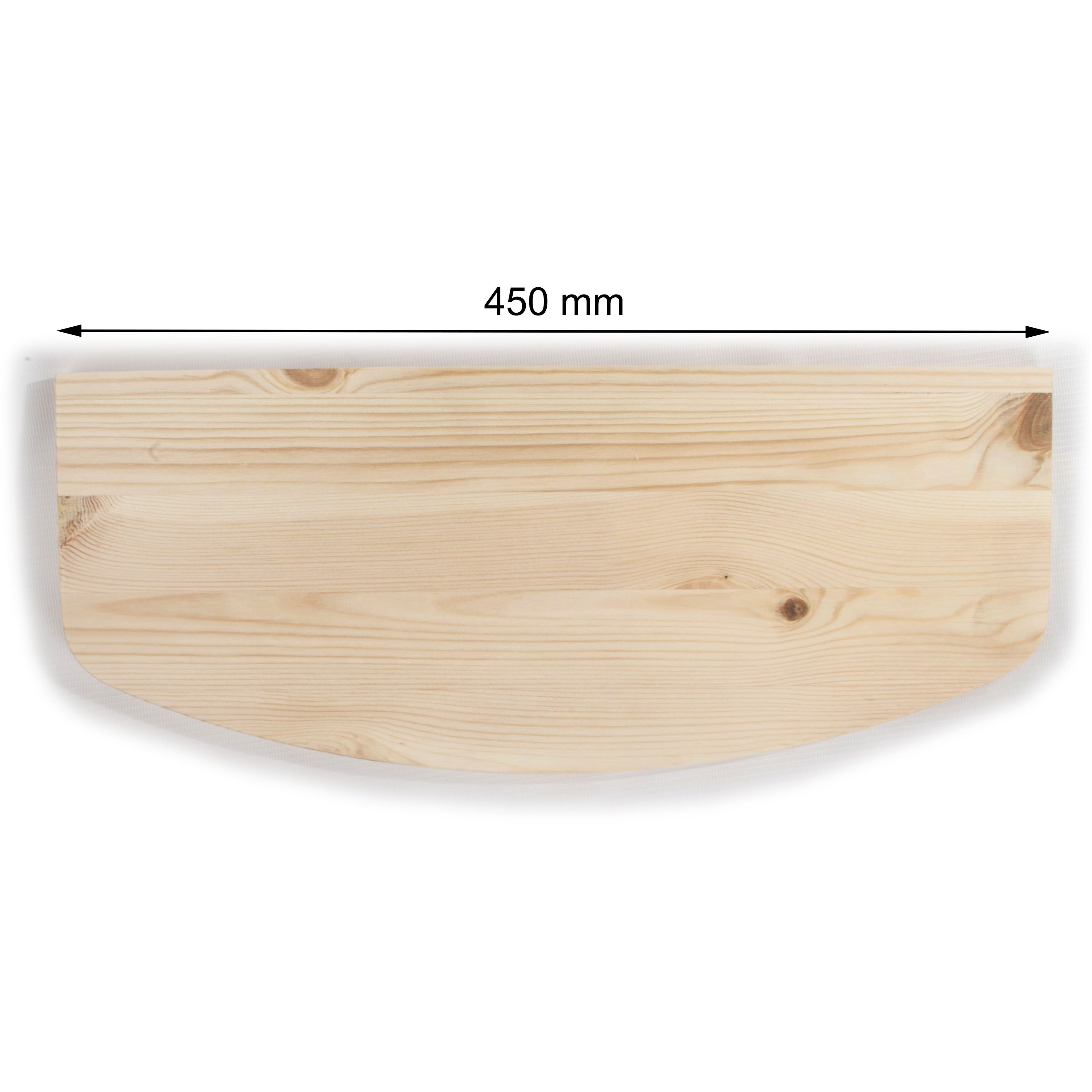 Wooden floating shelf 45x18 cm made of unpainted pinewood. Ideal for DIY decorating with various methods.