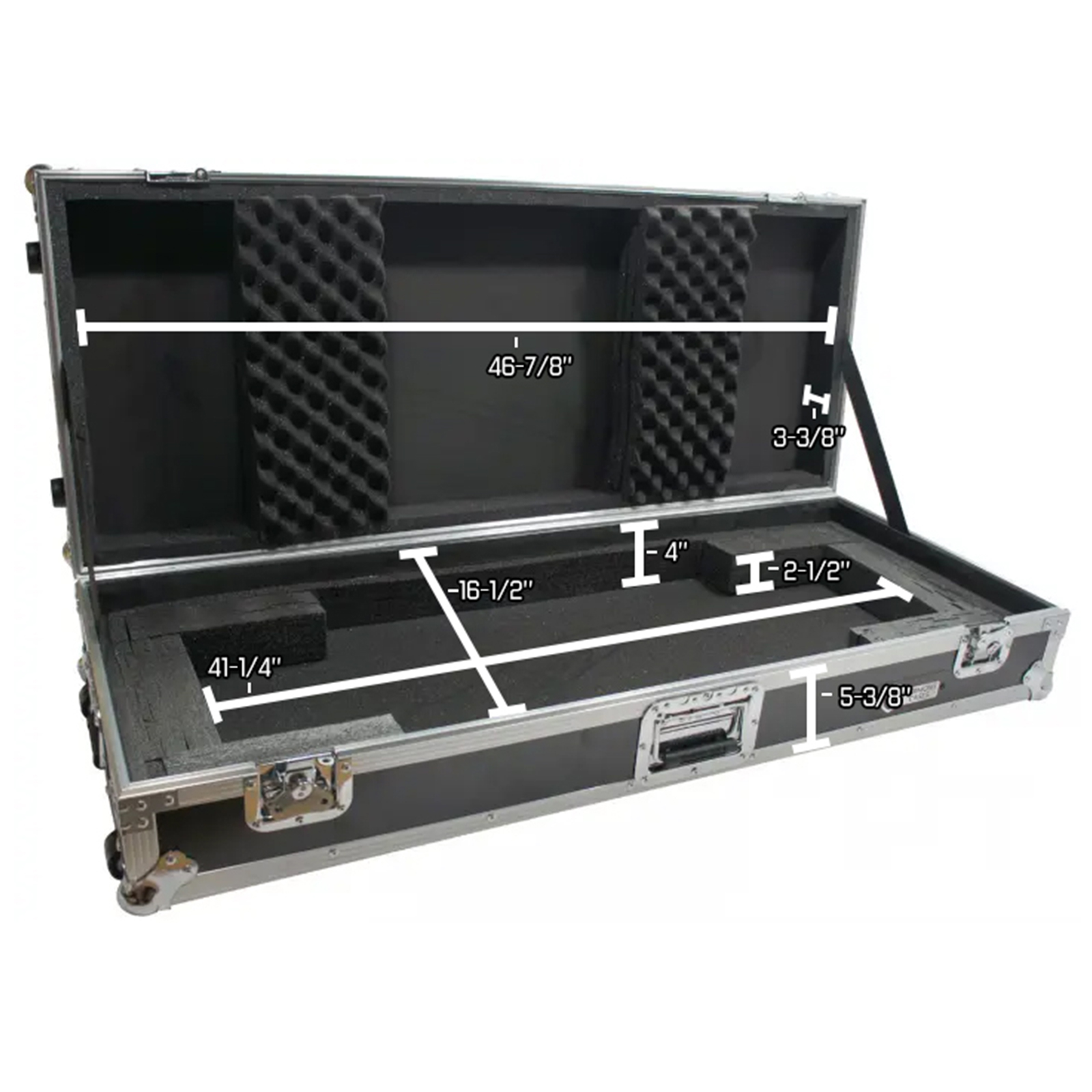 - Note: This case alone weighs 45 pounds and is designed for maximum protection of your keyboard it does feature rolling wheels but is still heavy when loaded.