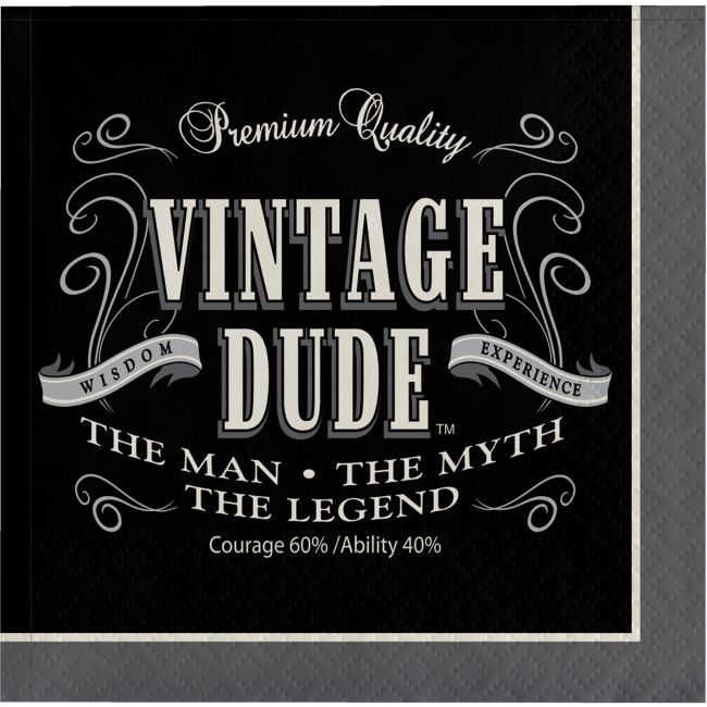Vintage Dude 3-Ply Beverage Napkins The Man Myth Legend Birthday Party Decor