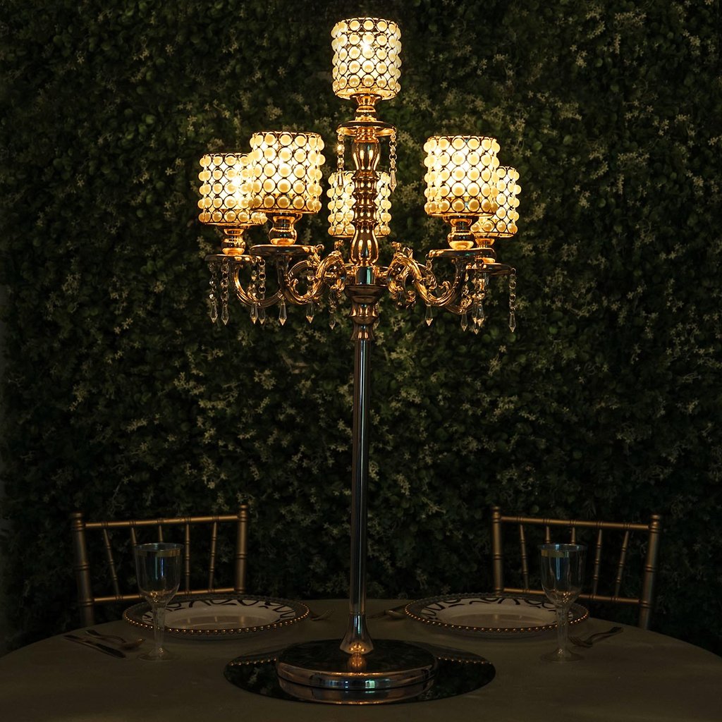 Gold 56" or 36" Candelabra CANDLE HOLDER Centerpiece Crystal Chains