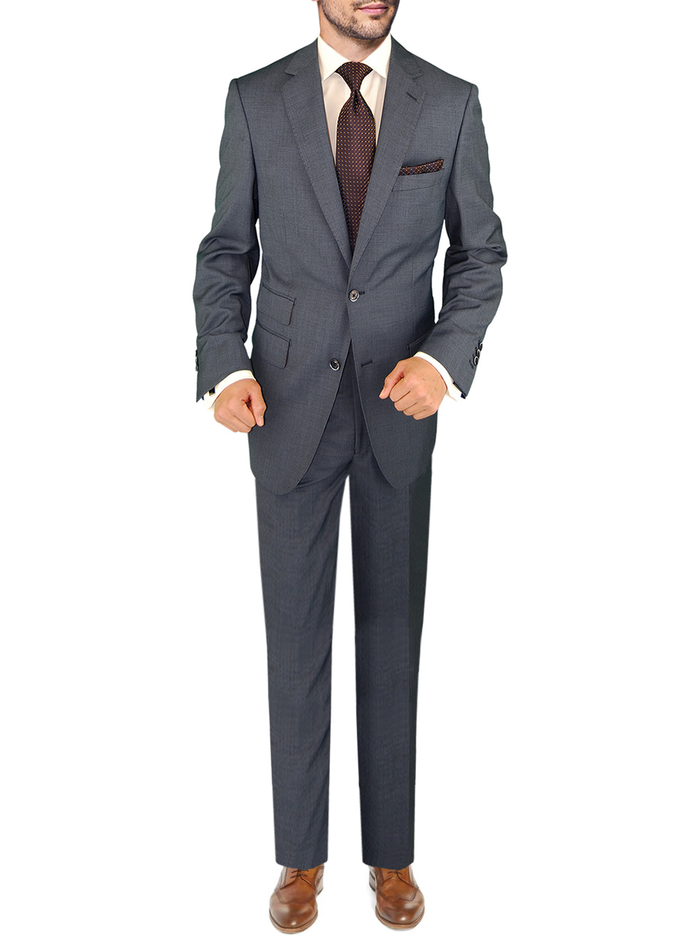 DTI BB Signature Men's Suit Two Button 2 Piece Suit Ticket Pocket Side Vent Jacket. JACKET: 2 button, single breasted, dual side vents jacket, 3 pockets with flaps, lapel notched, 4-button vented sleeves with working buttonholes. Viscose lining. PANTS: Flat Front dress pants, lined to just below knee 2 back pockets with buttons, length unfinished, inside waistband for reinforcement. These pants come with a standard 6-inches drop in the waist (e.g. a US 40R jacket will come with 34-inches waist pants). The waist can be altered in or out up to 2 inches. Hand Tailored. - Constructed with the finest detailing and highest quality with top finishing. 91% Wool 9% Silk, Imported, Made in Italy, Dry Clean Only